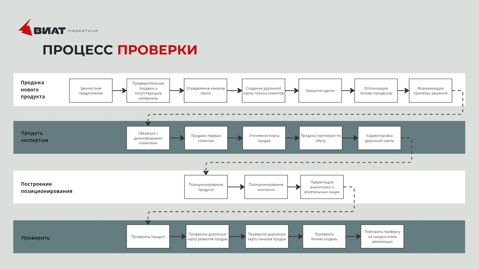 Главная задача любого проекта — успешно вывести новый продукт на рынок и обеспечить его прибыльность. Чтобы эффективно провести CustDev-интервью, необходимо сначала описать бизнес-процессы компании, связанные с запуском продукта, а затем на их основе разработать структуру беседы. Для примера я подготовил схему, которая показывает эти процессы и этапы тестирования гипотез: